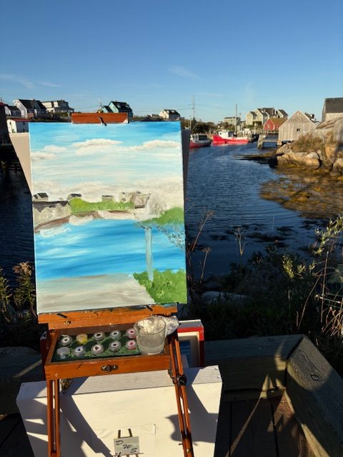 I braved the ‘Frost Alert’ and wore thermals! Coldest yet and windy. Had to wear gloves at the start. Beautiful day though and glad I did it. The last day of Plein Art this year and I made 6 out of the 7 days. Finished 4 paintings and started new one.
